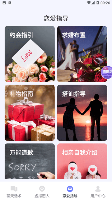恋爱指导:用户可以通过软件获取恋爱方面的指导,例如如何开始一段恋情、如何保持恋爱的新鲜感等。