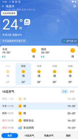 点击底部15日天气栏,可以查看未来最多十五天的天气状况