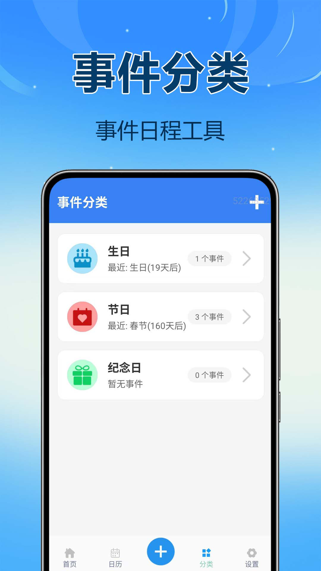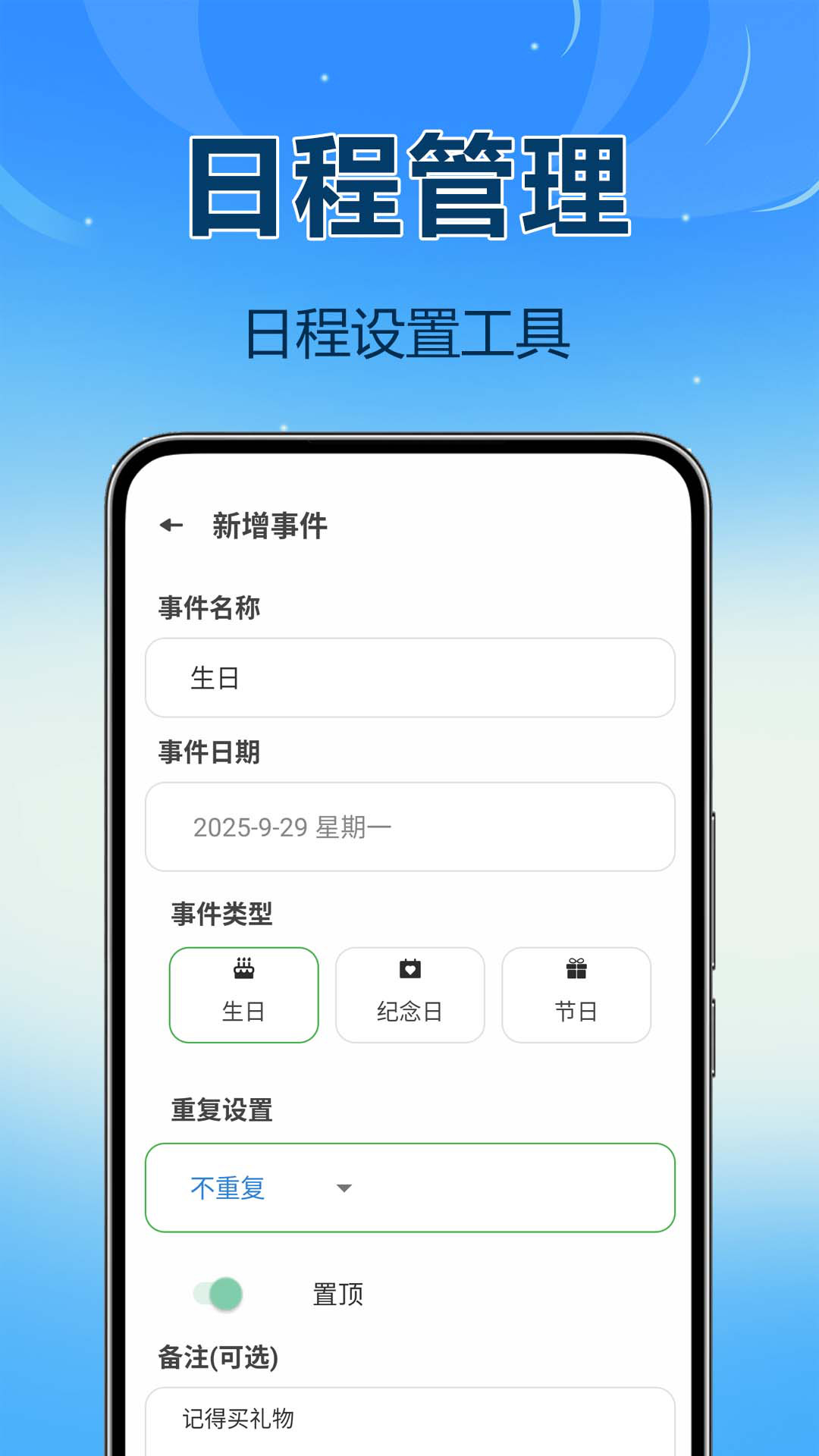 2. 支持自定义重要日期,如生日、纪念日、节假日等;