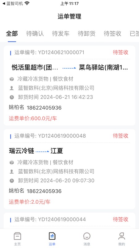 蓝智货主APP功能: