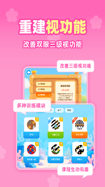 内容定期更新:持续迭代新增趣味训练内容和游戏关卡,保持训练的新鲜感和趣味性,让孩子长期坚持训练不枯燥,助力视力稳步改善。