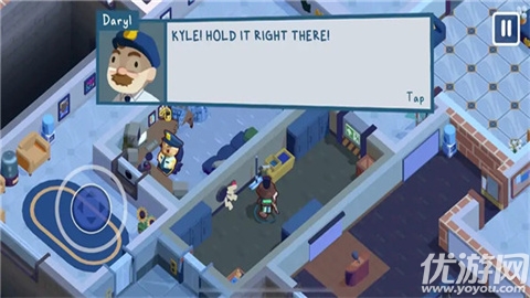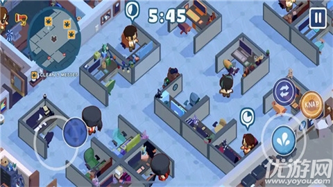 7个关卡包含古怪场景、动态布局与滑稽惊喜,从堆满文件的迷宫到突然倾斜的会议室,每关都充满即兴喜剧感。