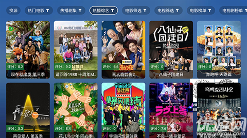 1、软件自带影视源接口配置,点击左上角的换源可以切换首页影视源。