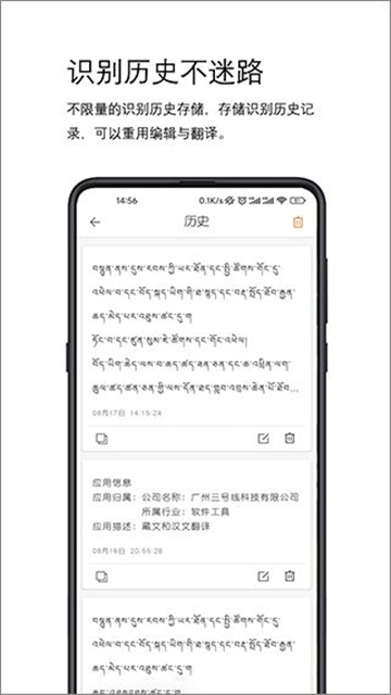 1、自动保存不迷路不限量的识别历史存储,存储识别历史记录,可以重用编辑与翻译。