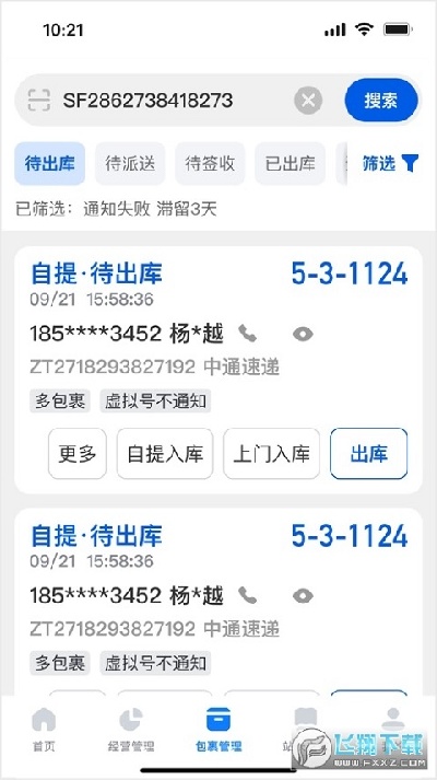2.库存管理与查询:提供实时库存查看功能,用户可通过关键词搜索包裹位置、状态,支持多仓库分区管理,便于大型驿站分类存储和快速定位丢失件。