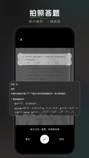 6.拍照答题:支持拍照识别题目并提供解答,涵盖多个学科领域,是学生党和学习者的得力工具。