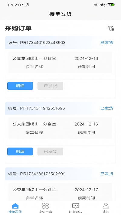 1.接单发货管理:支持供应商实时查看新采购单详情,快速完成接单确认操作,同时可在线提交发货信息,清晰记录接单、发货全流程,实现订单操作闭环,满足城运智慧食堂供应商端接单操作的基础需求。