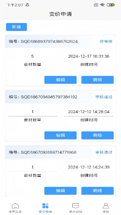 2.变价申请操作:当市场食材价格出现较大波动时,供应商可通过APP随时提交价格变动申请,填写变动原因、新价格等相关信息,流程简洁高效,无需线下提交材料,大幅节省沟通成本。