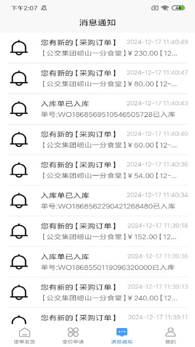 3.消息通知接收:实时接收各类重要消息反馈,涵盖报价提醒、重报通知、发货提示等,同时覆盖报价单驳回重报、报价通过、入库收货等全流程参与节点,确保供应商不错过任何关键操作。