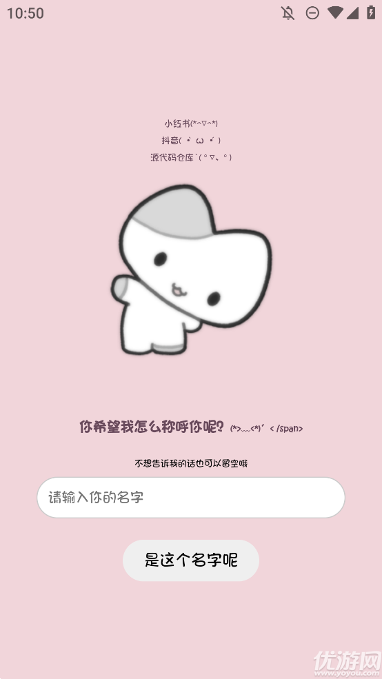 1、下载安装应用后打开软件,在进入界面时输入想让小猫称呼你的名字。